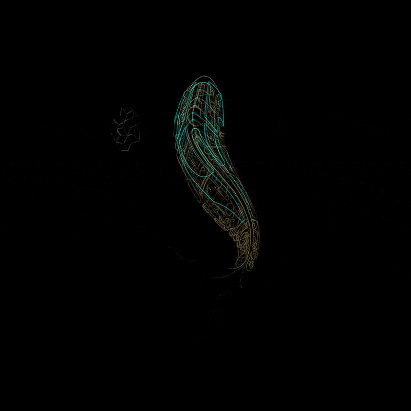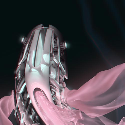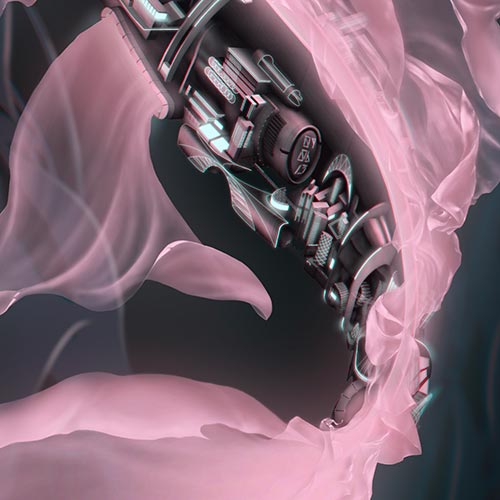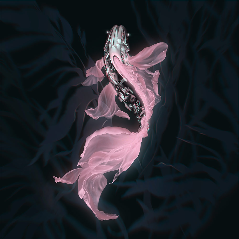 Now the mechanical fish is shaped like a koi and has sci-fi influences. I wanted to keep the feeling of complexity, but contrast it with the fins that simulate silk underwater.